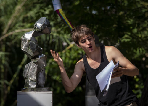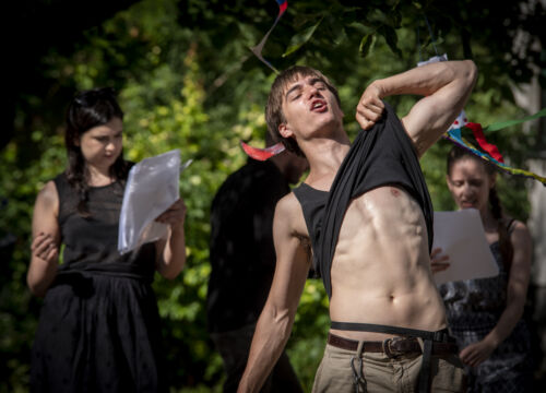 Felolvasó színház Formanek Csaba – az Örkény István drámaírói ösztöndíj díjazottja – készülő darabjából az Új Alkotóműhely Egyesület tiszakécskei művésztelepén.