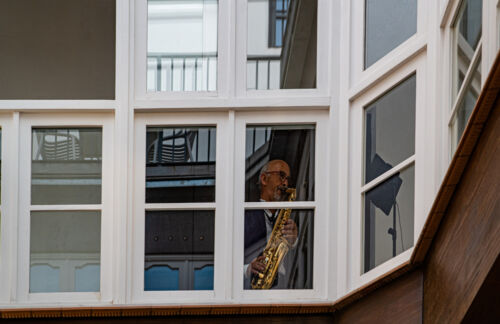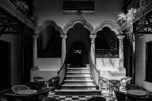 Patio, cielo encauzado.